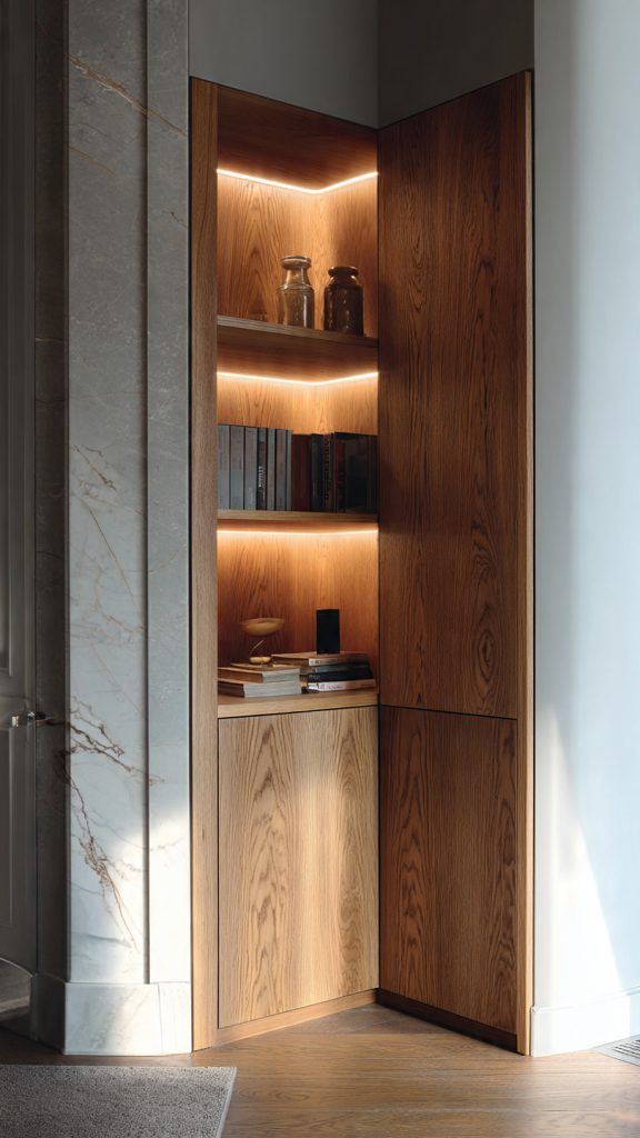 7. Corner Storage That Blends In