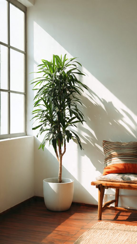 A tall plant is one of the easiest ways to soften an awkward corner. Plants add height, texture, and life without requiring much space.