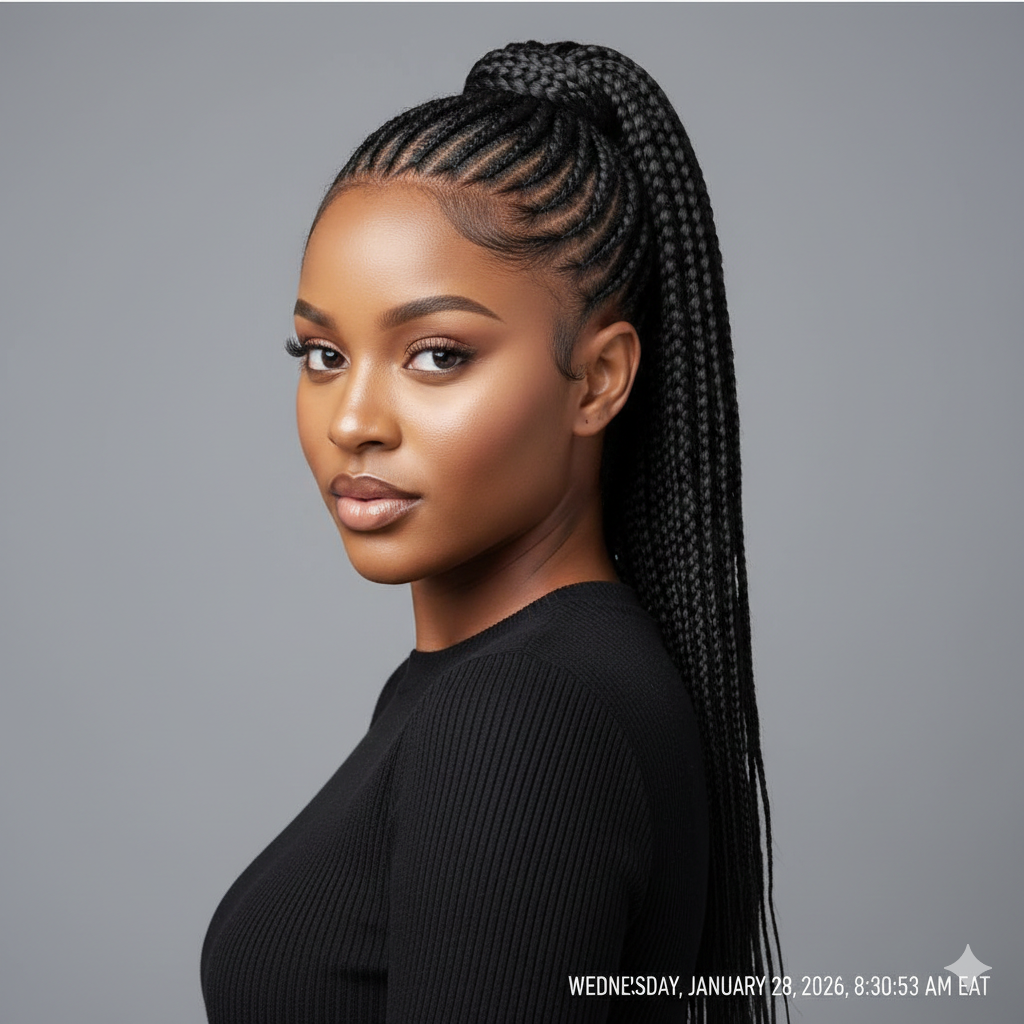 Simple cornrows pulled into a ponytail are beginner-friendly.