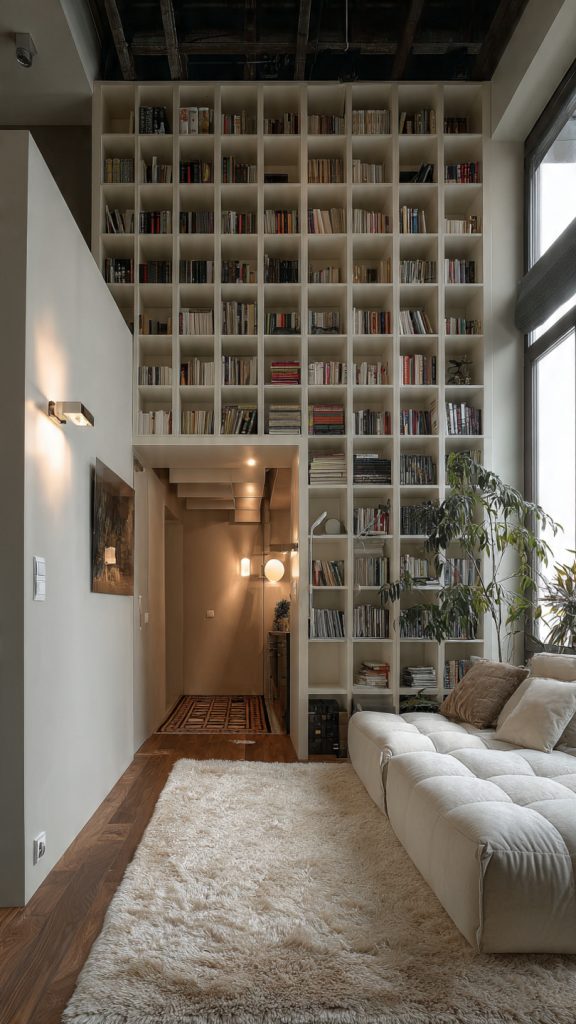 When shelves run seamlessly from floor to ceiling, they feel like part of the architecture rather than an afterthought.