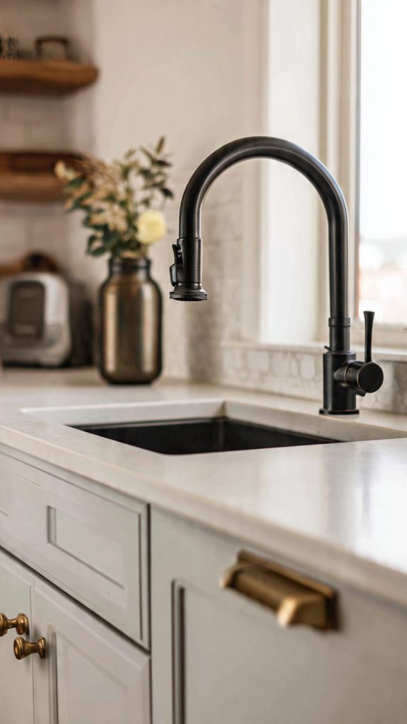 Combine metals like matte black, brushed brass, or soft stainless steel without matching everything exactly.