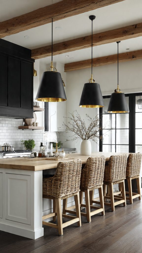 Mixed metals feel layered and intentional, helping the kitchen look curated rather than formulaic.