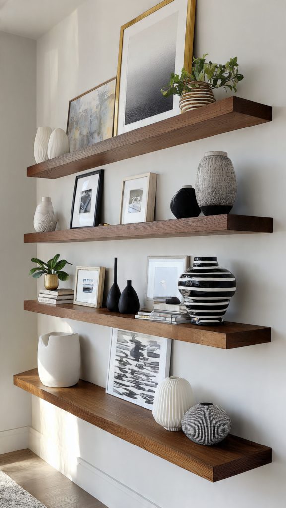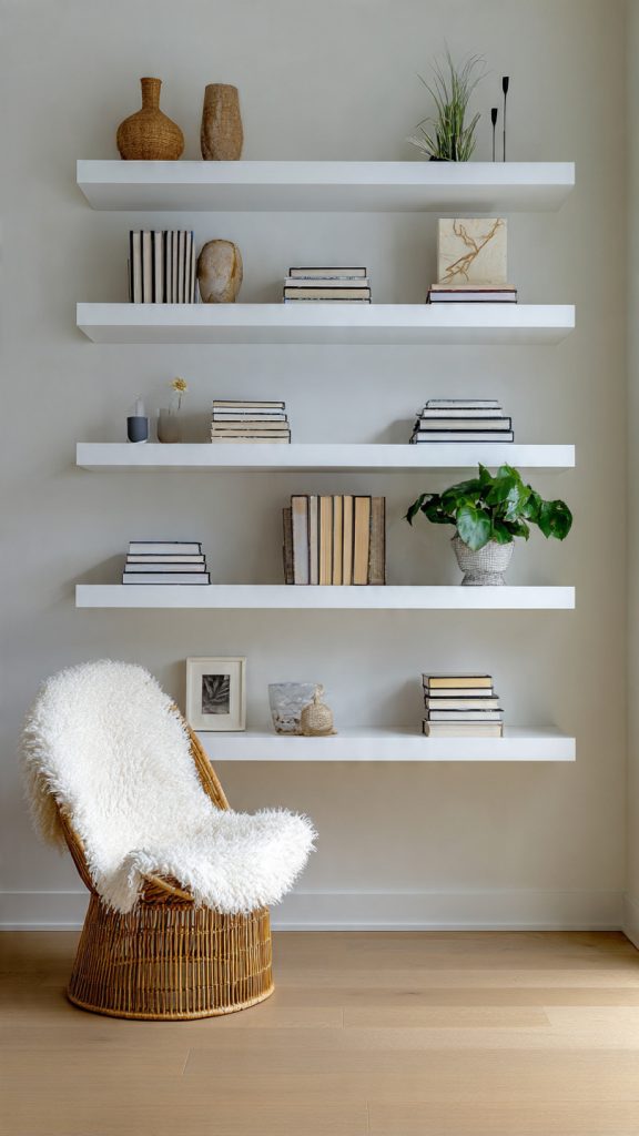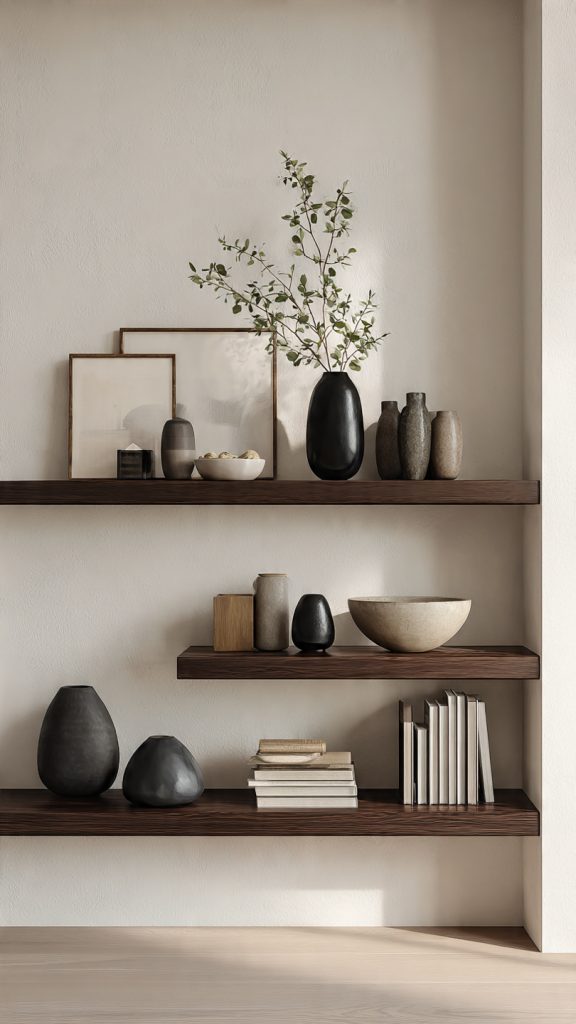 Floating shelves should enhance a room, not overwhelm it. With thoughtful styling, they can look clean, curated, and architectural rather than cluttered.