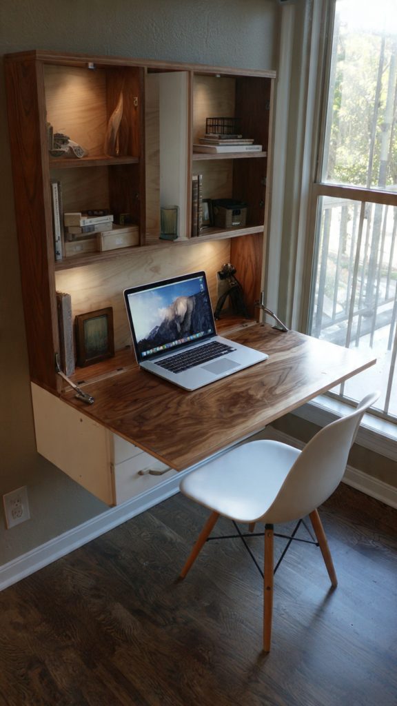 6. Fold-Down Desk with Hidden Storage