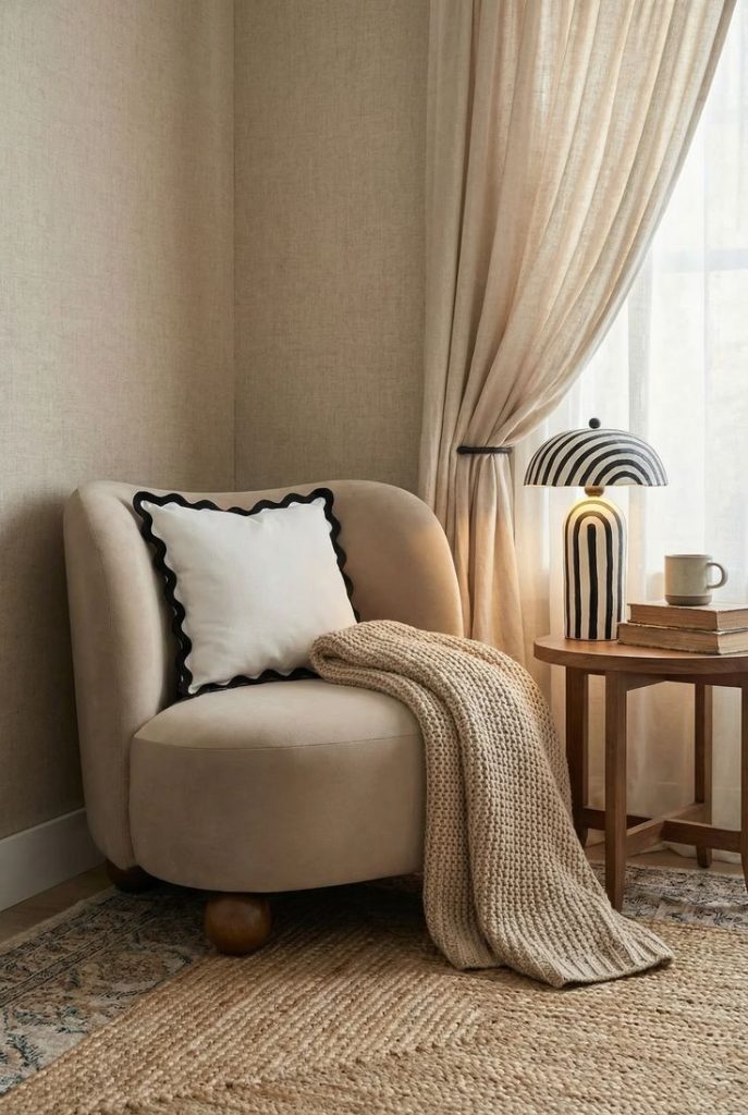 Nothing completes a corner like a statement armchair. Pick a bold color or unique texture that pops against your walls. Pair it with a cozy throw or a patterned pillow for ultimate comfort. This setup instantly creates a reading nook or a stylish spot for morning coffee.