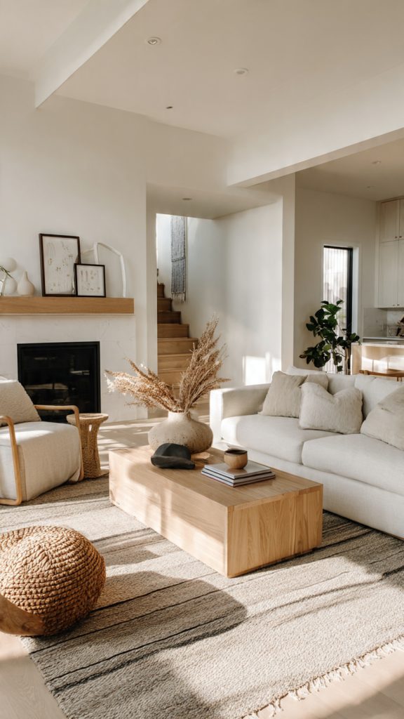 The contrast between soft textures and clean forms creates warmth without sacrificing a modern feel.