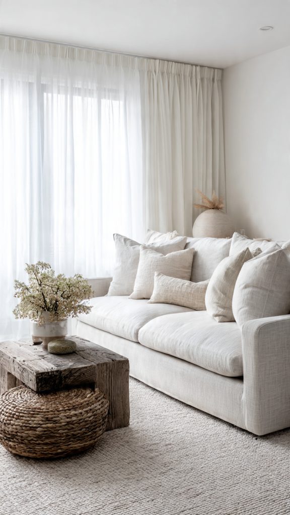 This palette sets the foundation for an airy living room that feels timeless rather than trendy.