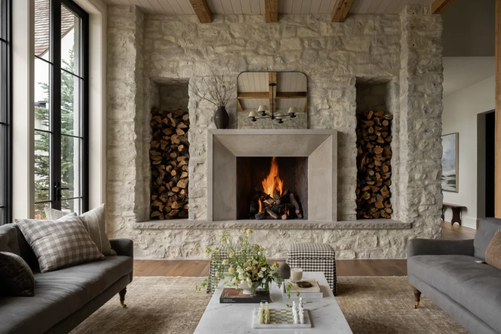 In a modern Mediterranean living room, stone is often balanced with smooth surfaces and minimal decor. Textured walls create interest even in neutral spaces, allowing the room to feel rich without relying on heavy ornamentation.