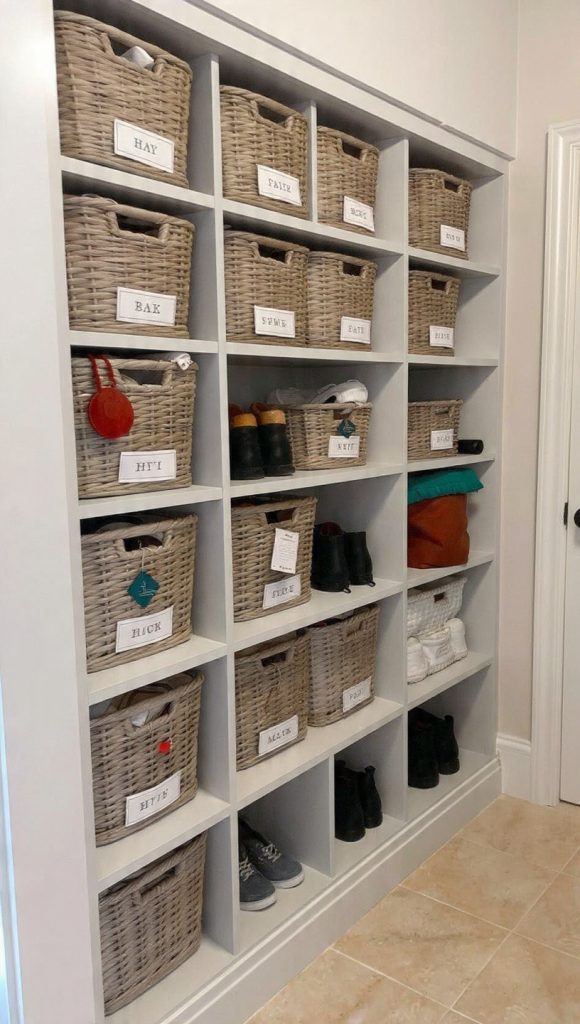 - Often includes shelves or baskets for shoes
