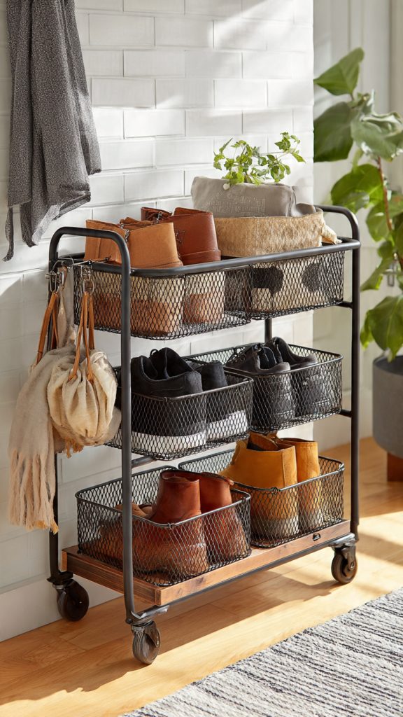 A small cart can serve as a flexible mudroom substitute.