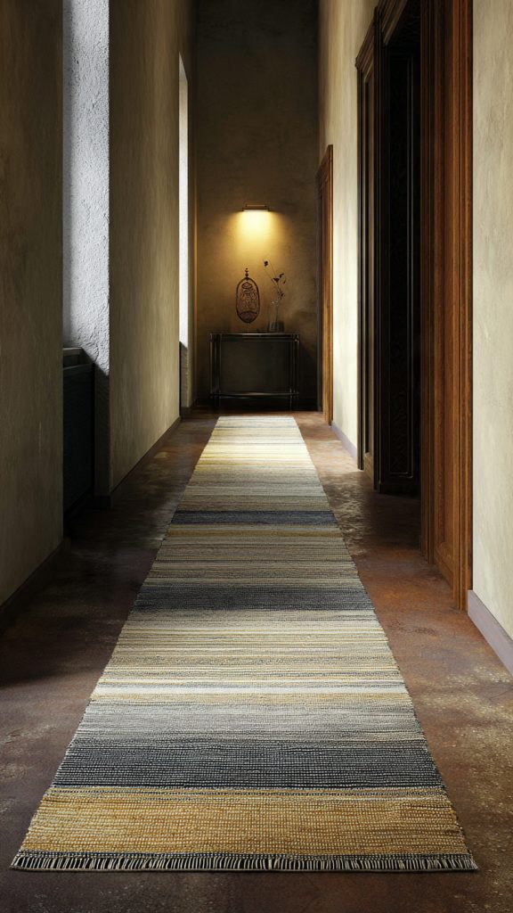Long, narrow rugs can visually stretch a hallway.