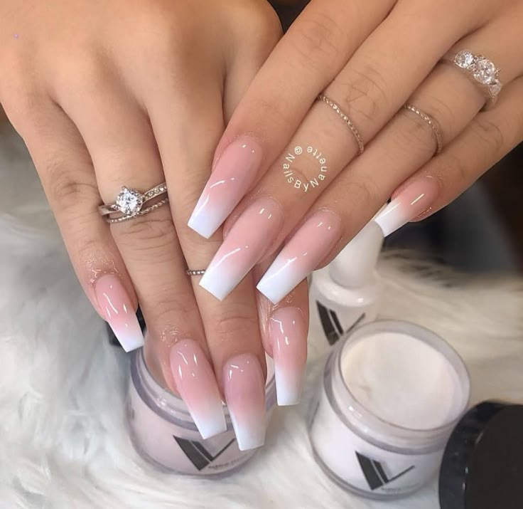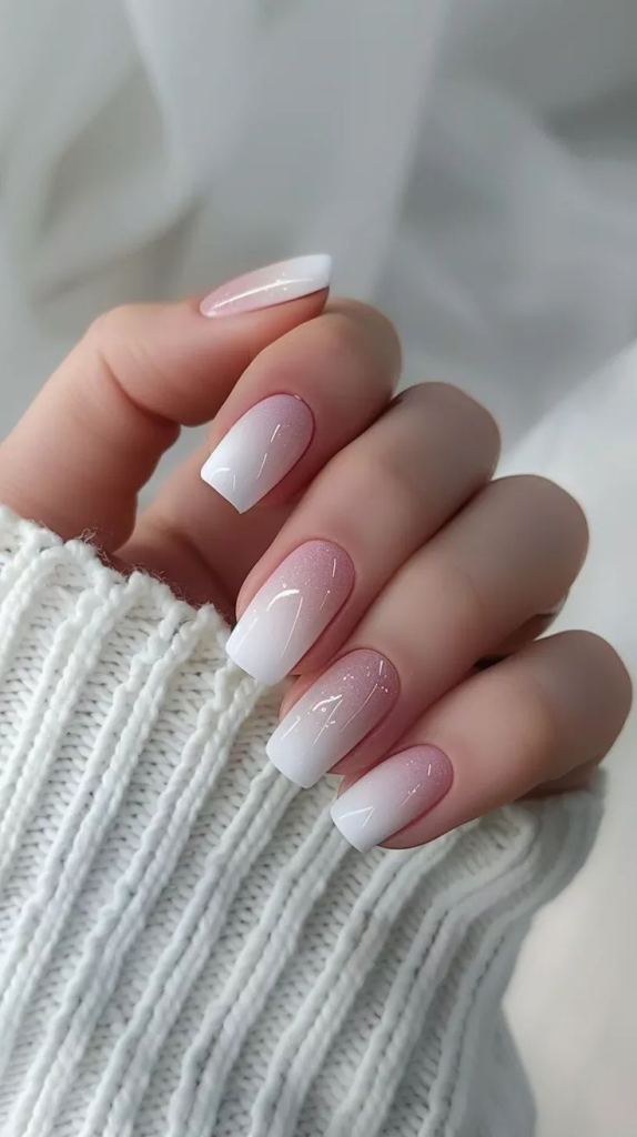 The nude-to-white ombre is a clean, elegant choice that works for any occasion. This style softly blends a natural nude base into milky white tips, creating a seamless and refined finish.