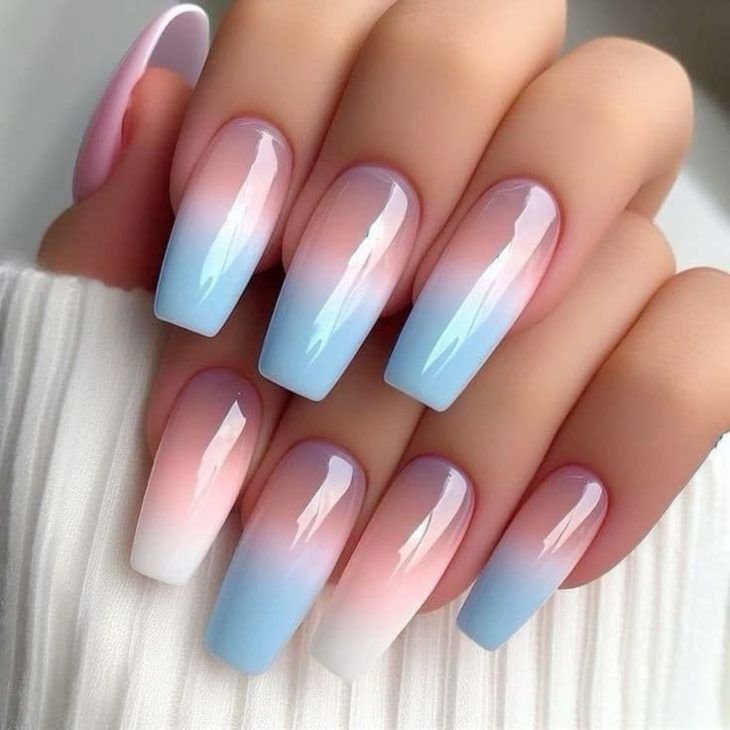 Pastel ombre nails are perfect for a soft, dreamy aesthetic. Shades like lavender, baby blue, mint, and peach blend beautifully into each other, creating a light and airy look.