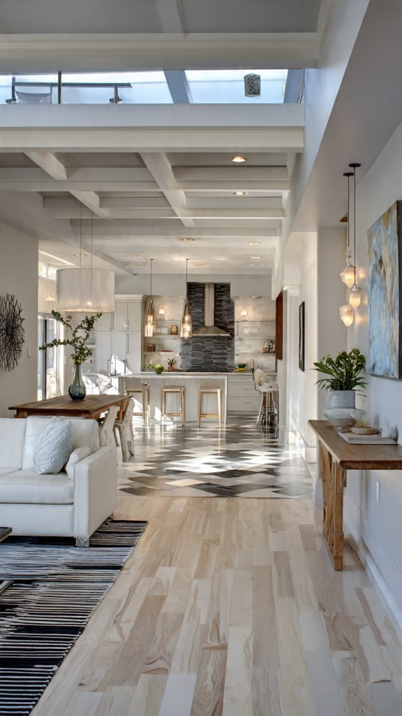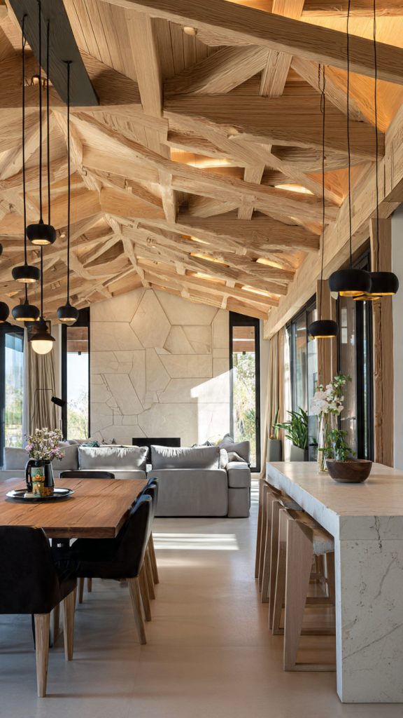 Even without walls, ceilings can help define space. Changes in ceiling height, exposed beams, or directional lighting tracks subtly indicate where one zone ends and another begins.
