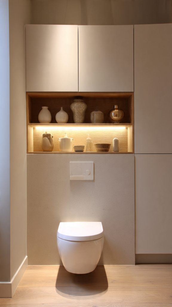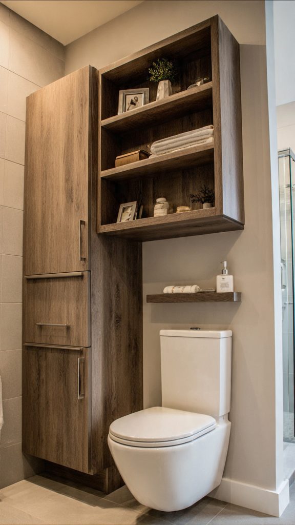 Over-the-toilet storage doesn’t have to look temporary or cheap. With the right materials, proportions, and restraint, it can feel just as intentional as any other part of the bathroom.