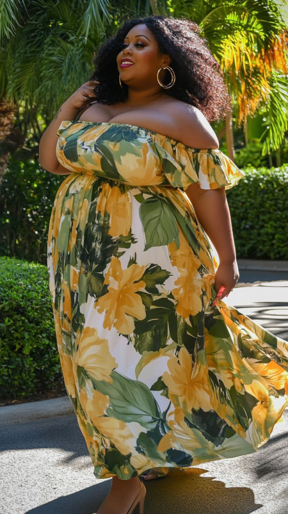Style Tip: Choose print sizes that complement your shape—medium to large florals feel balanced and harmonious. Complete the look with strappy sandals and delicate jewelry.