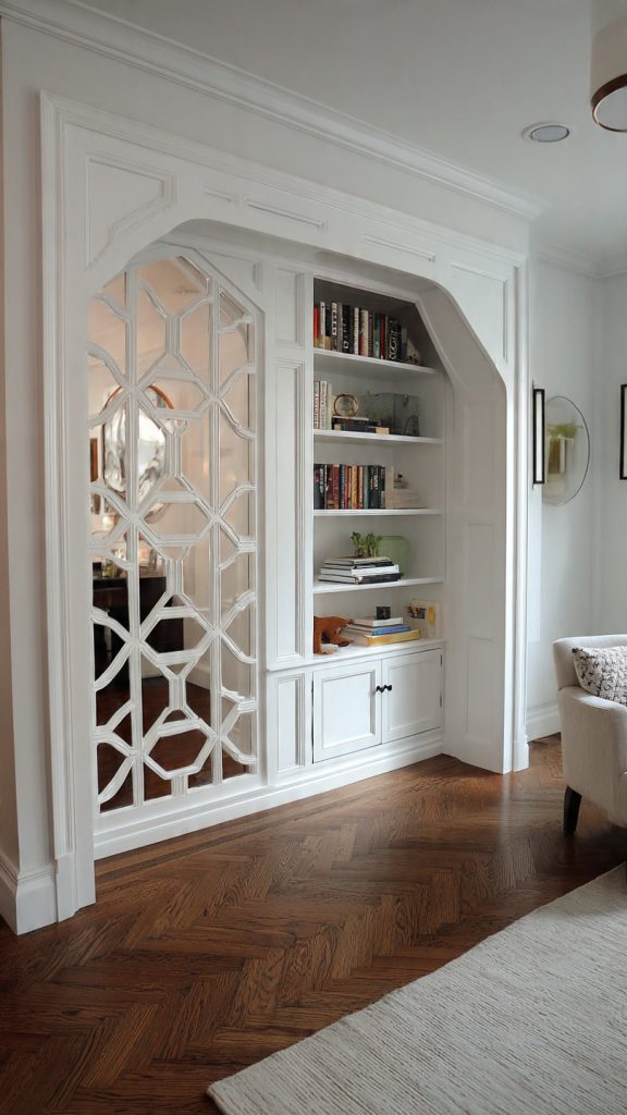 Styling shelves carefully keeps the divider looking intentional rather than cluttered.