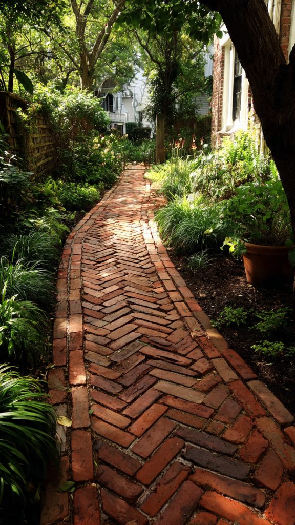 Visual Tip: Use low-growing plants like moss or chamomile between the bricks to soften the lines and create a lush appearance.