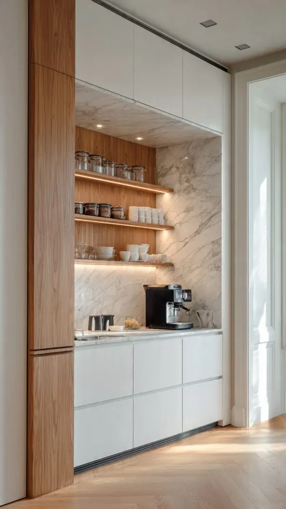 Slim pantry units fit into small gaps beside refrigerators or walls. These vertical units provide surprising storage without overwhelming the kitchen.