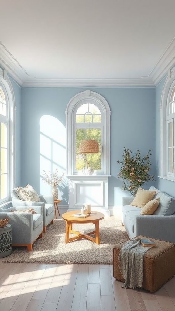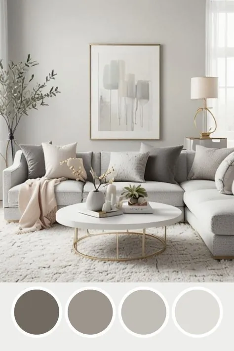 Pale gray is a sophisticated alternative to white. It keeps the room light while adding subtle warmth and depth. Pair it with pastel or muted tones for furniture and textiles to create a balanced, open vibe.
