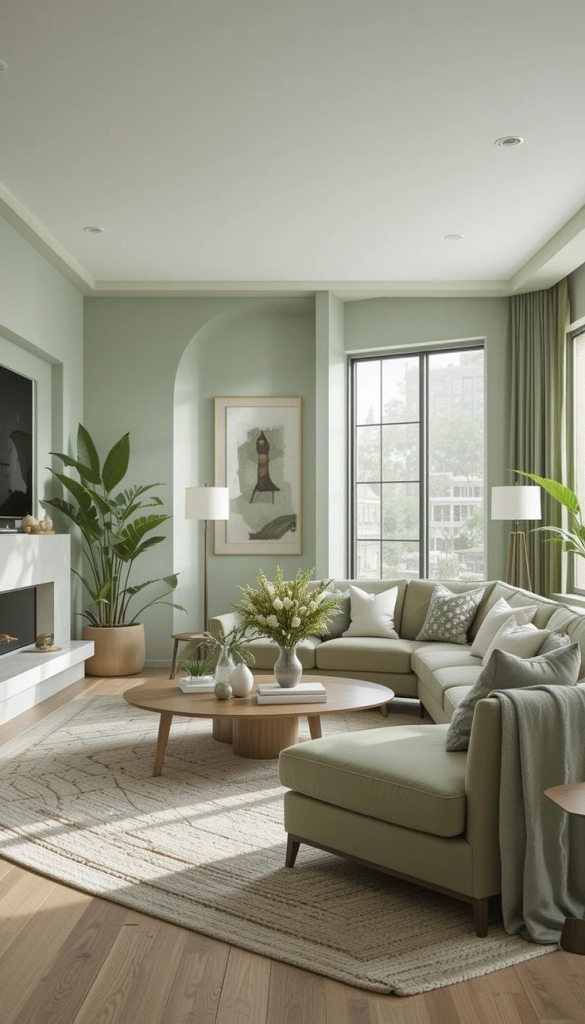 Sage green is both calming and trendy. It creates a natural, open feel and pairs beautifully with wood tones and white accents. This muted green works in bedrooms, living rooms, or kitchens alike.