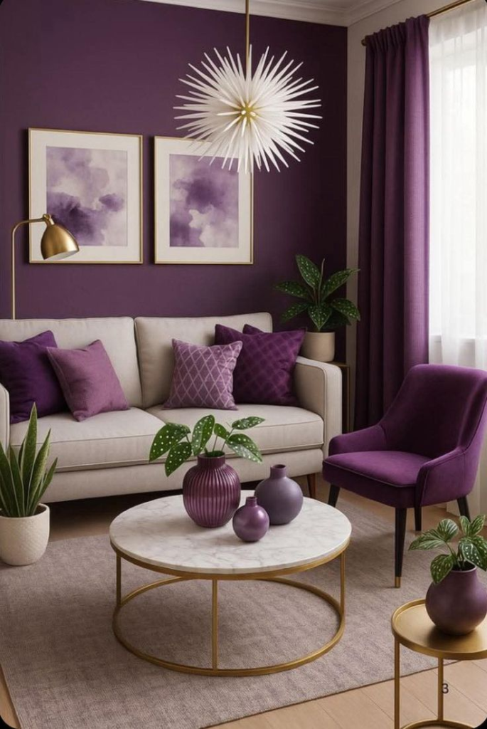 Lilac and lavender are surprisingly versatile for small spaces. Their soft undertones make a room feel airy while adding a modern, playful pop of color.