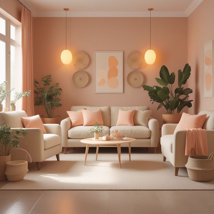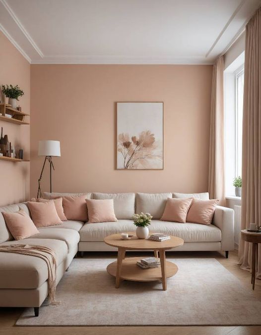 Soft peach or apricot adds warmth without shrinking the room. It creates a welcoming and playful environment perfect for living rooms, bedrooms, or home offices.