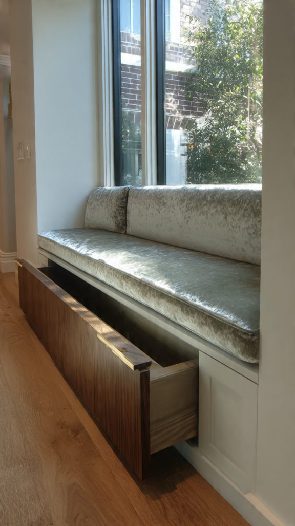 Built-in window seats with drawers underneath are a classic for a reason. They provide generous concealed storage while keeping the seat visually clean.