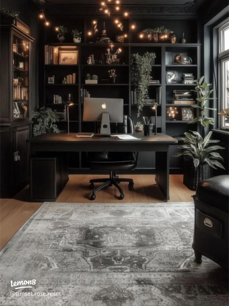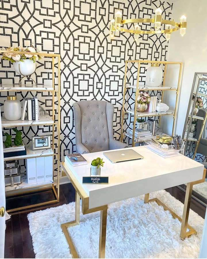 For women who love structure and sophistication, a modern boss-lady vibe is ideal. Opt for a black and white color palette with bold, geometric décor. A statement desk chair, motivational wall art, and high-quality lighting create a space that screams confidence and ambition. Add a touch of femininity with soft curtains or floral artwork.