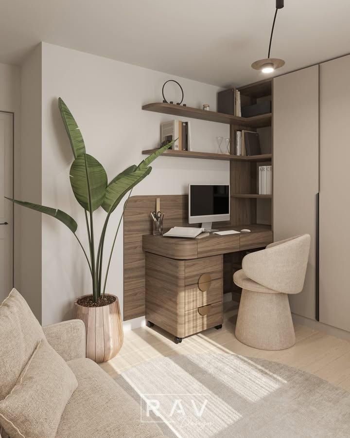 Even if you don’t have an entire room, a small corner can become a dreamy workspace. Floating shelves, a compact desk, and a comfy chair are all you need. Decorate with your favorite candle, small vase of flowers, or framed art prints. A corner office proves that size doesn’t define creativity.