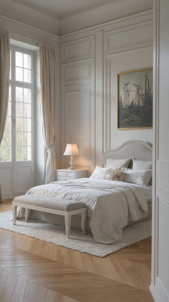 Limit wall decor to two or three larger pieces instead of many small ones. Fewer, bigger elements help the room feel peaceful and uncluttered.
