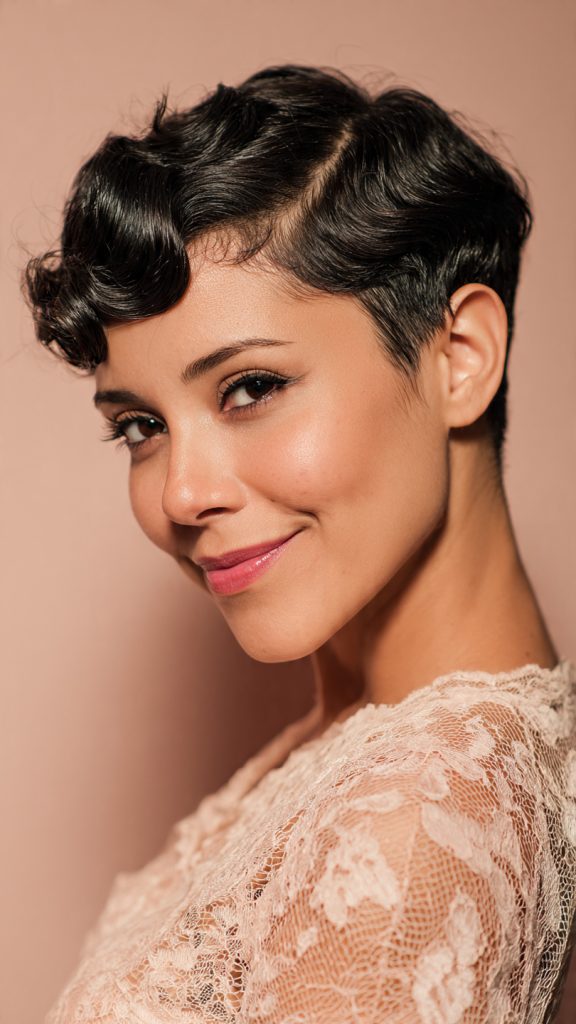 Combine vintage finger waves on the longer top section with shaved sides for a glamorous, old-Hollywood-meets-punk vibe.