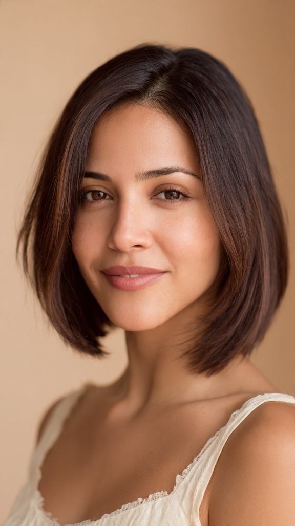 For stick-straight fine hair – You need maximum choppiness and a shorter length (chin or above). The lack of natural wave means your hair will show every cut line, so ask for aggressive point cutting.