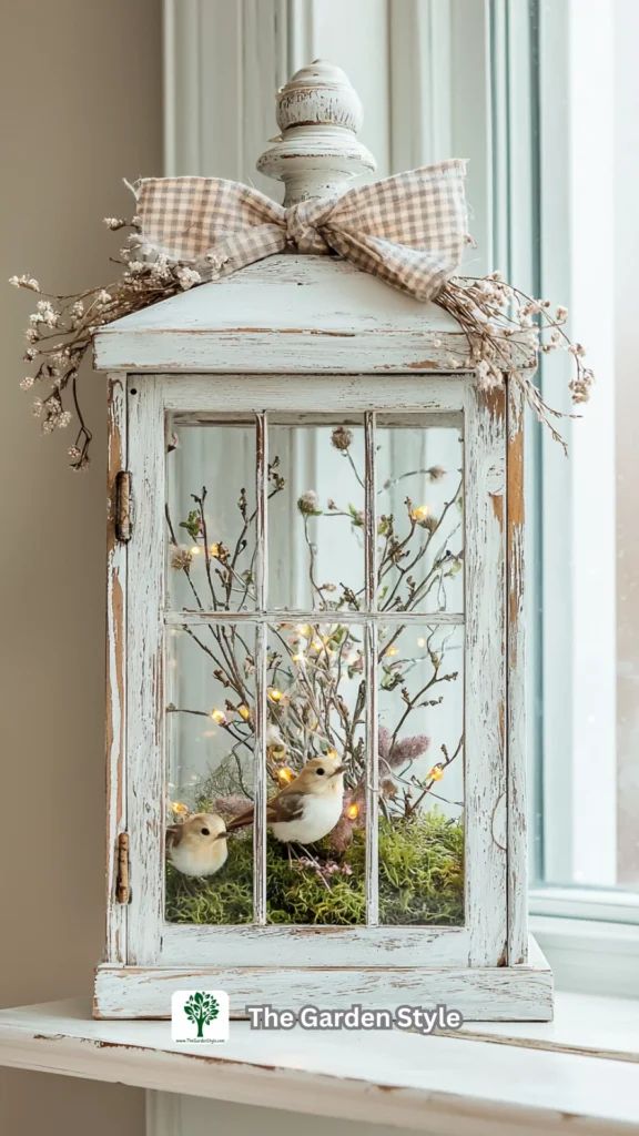 - Decorating old lantern frames with rope, beads, or glass panels.