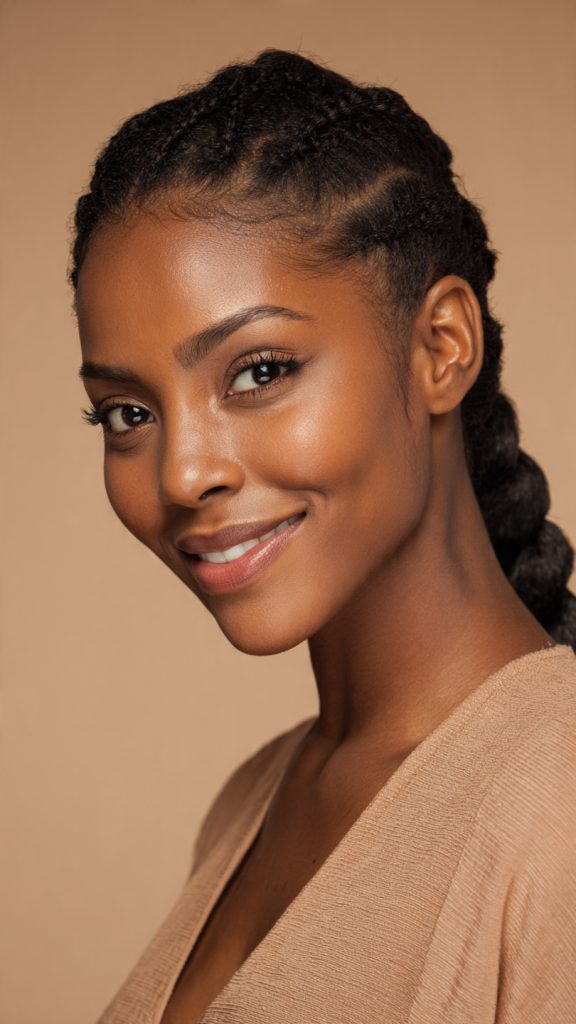 Braid the bottom two inches of a low ponytail and flip the end under; the weight of the braid keeps flyaways tucked in all day.