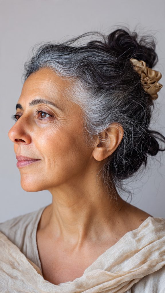 Yes, an updo counts as a medium-length style when you leave strategic pieces down. Start with a shoulder-length, layered cut. Pull the back and crown into a loose, low messy bun (secure with a silk scrunchie to avoid breakage). Then, gently pull out two to three face-framing tendrils—one near each ear and a shorter piece near the temple. This “undone” style softens the face, hides thinning at the crown, and looks intentional. It’s the ultimate secret weapon for second-day hair.