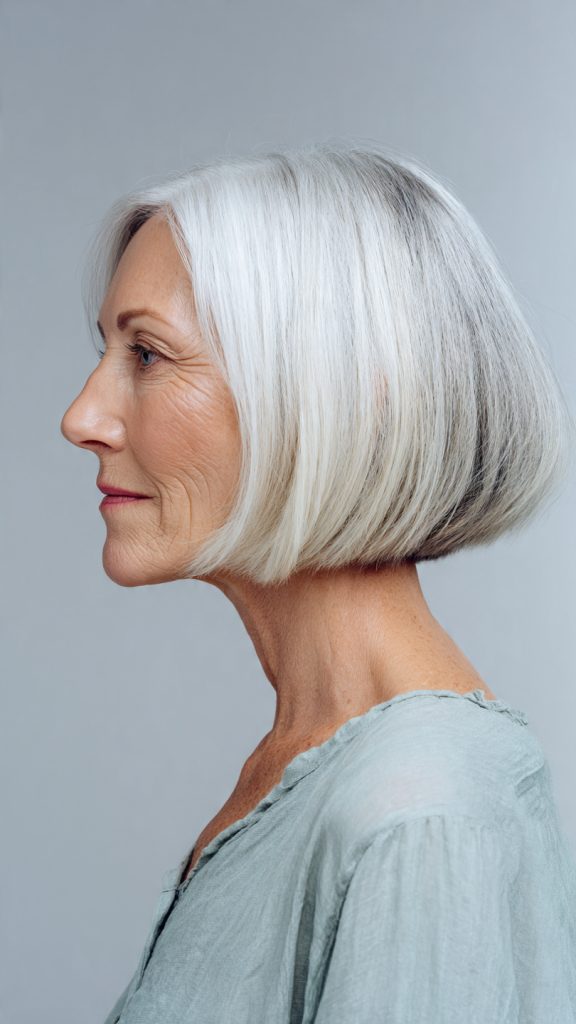 For the bold, modern older woman, this cut adds edge without being severe. Keep the front longer (chin to collarbone) and the back shorter, but with a subtle “undercut” at the very nape of the neck. This removes the “bulk” that causes the back of a bob to stick out and keeps you cool in warmer months. When worn smooth, it highlights the jawline; when tousled, it softens the whole face.