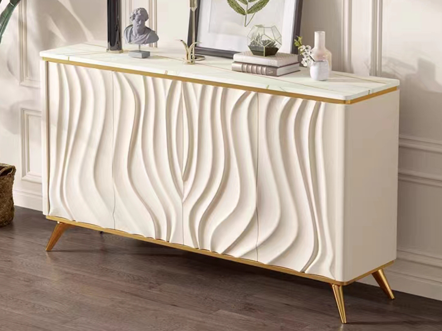 Stone grounds the Mediterranean aesthetic. Travertine, limestone, and marble are the stars of 2026. You will see stone buffets, marble-topped dining tables, stone vases, and textured candle stands appearing in even the smallest dining rooms.