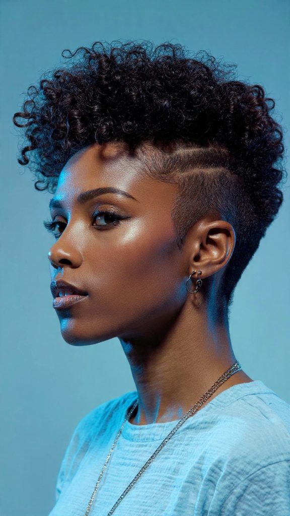 - Styling Tip: Define the center strip with a curl elongating gel. You can pin the sides flat or shave them completely for maximum contrast.
