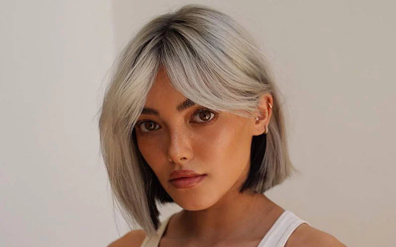 A chic Parisian-inspired look that pairs sharp cuts with soft bangs for balance.