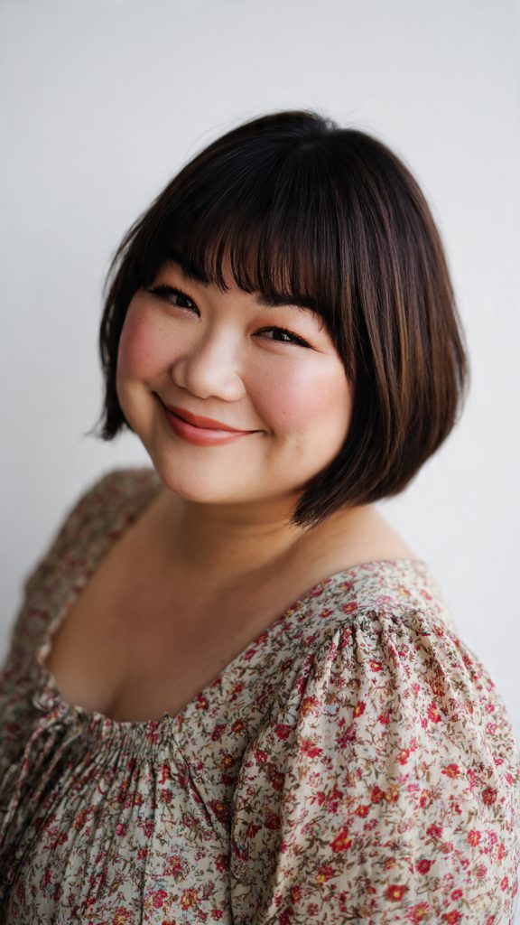 Not the flat 90s kind. The modern bowl cut for plus-size women is soft, rounded, and full of volume. It acts like a frame for the face. This works best on straight or wavy hair. Ensure the edge sits at the mid-cheekbone.