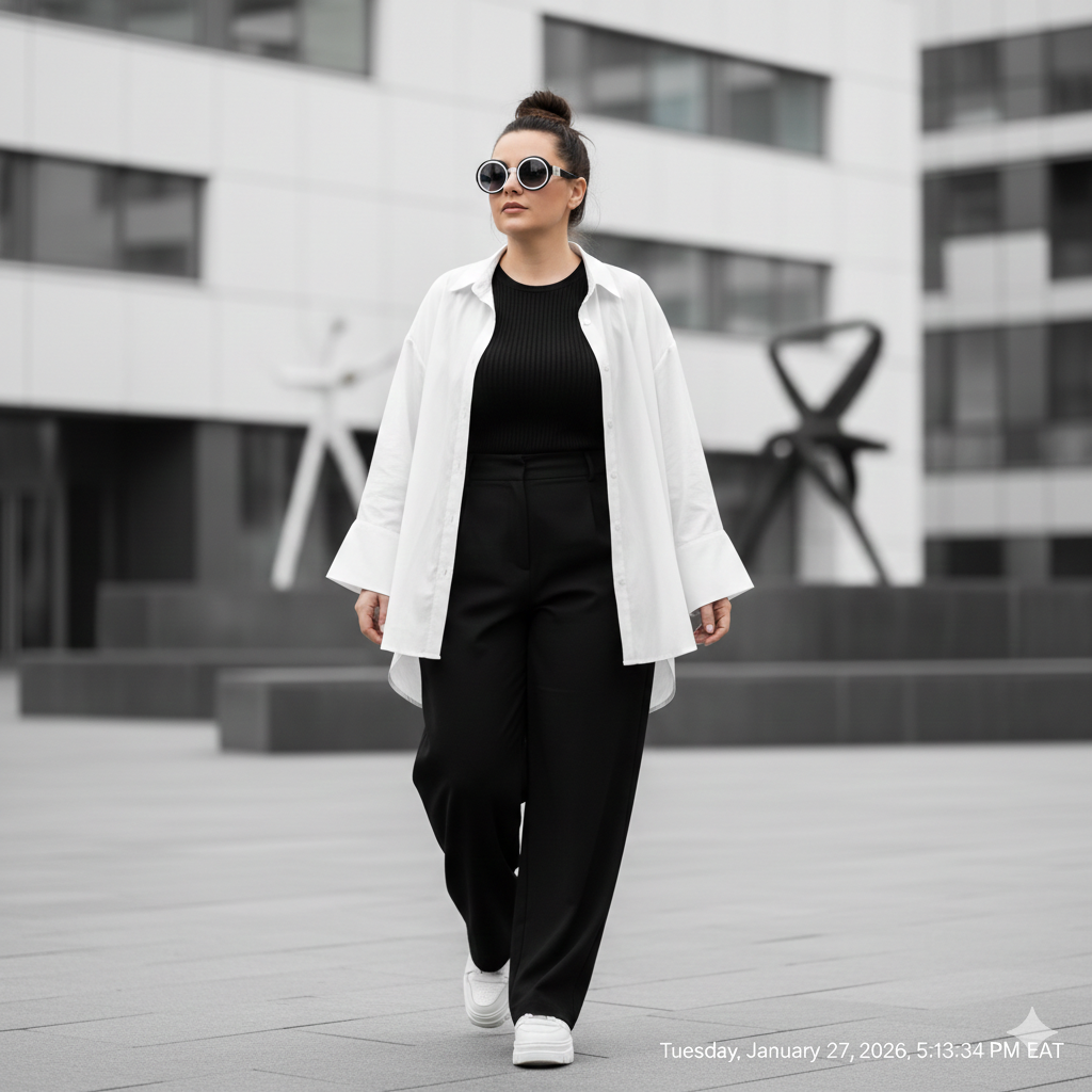 Oversized square frames add angles and structure, helping balance a fuller face and make it appear more defined.