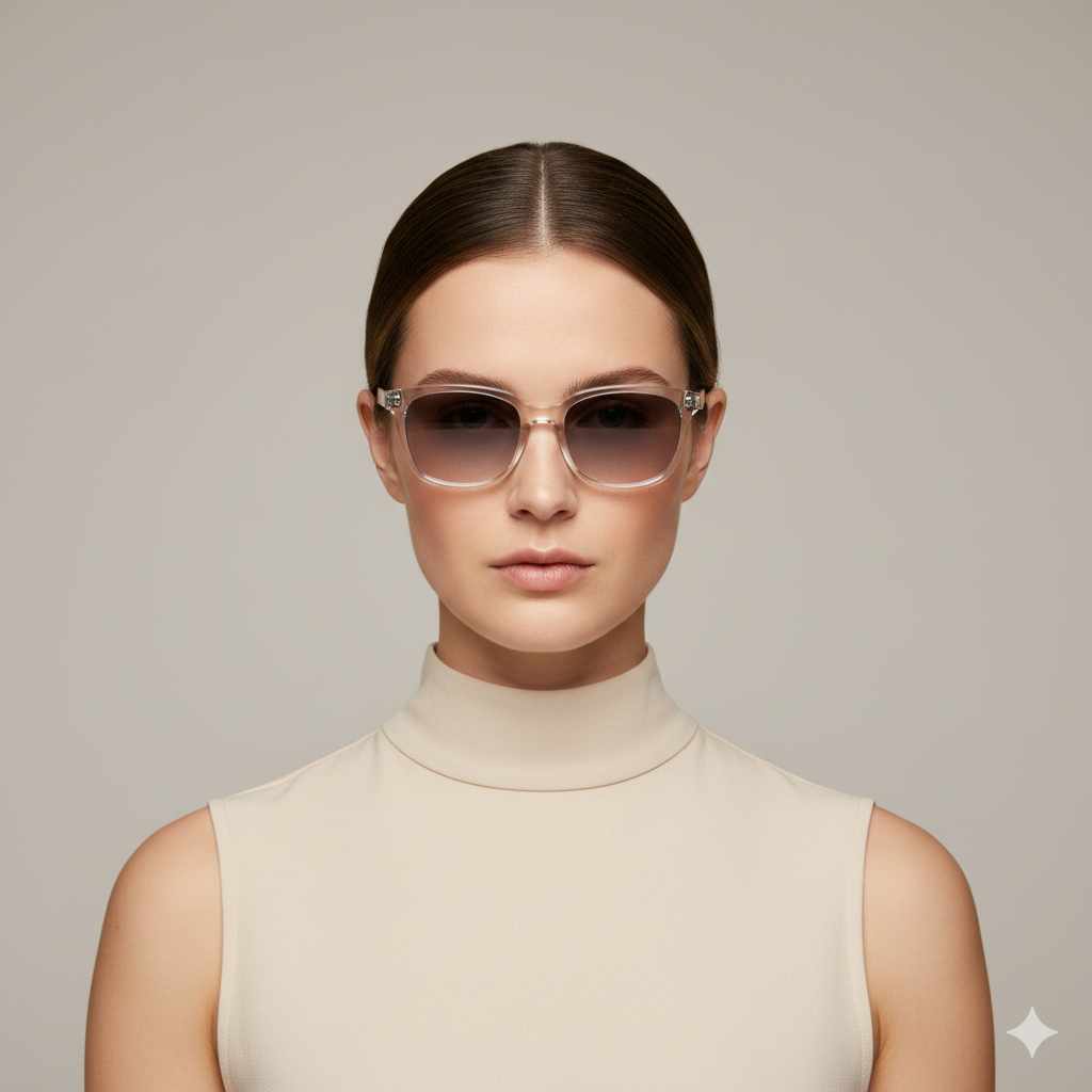 Transparent frames are modern, subtle, and flattering. They add structure without overpowering your features.