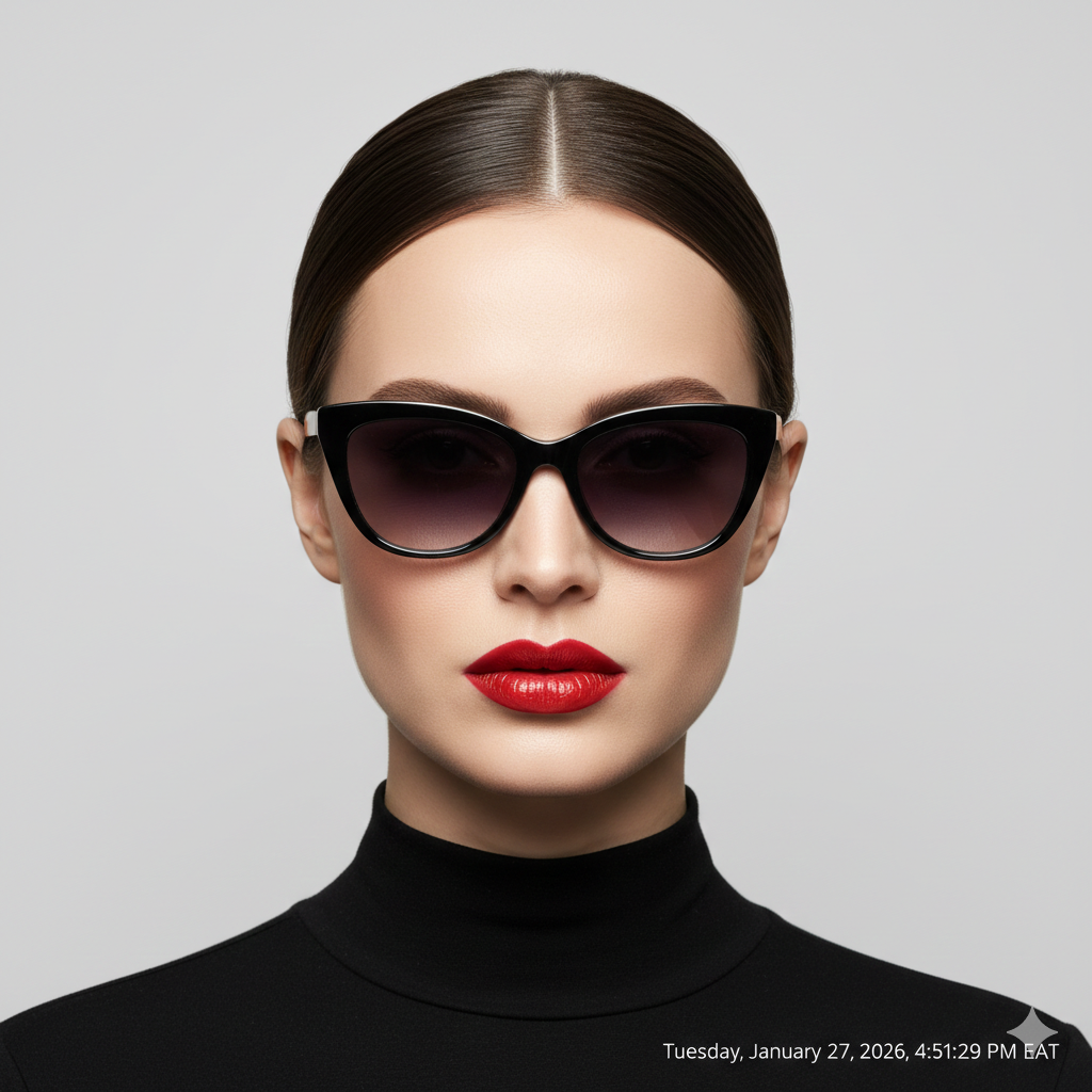 Cat eye frames add lift and shape, creating a flattering contrast to the strong jawline of a square face.