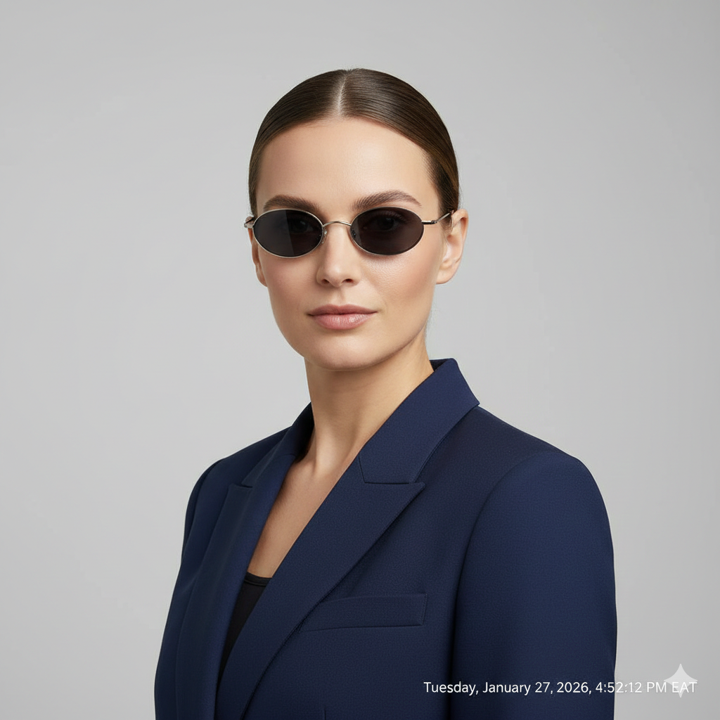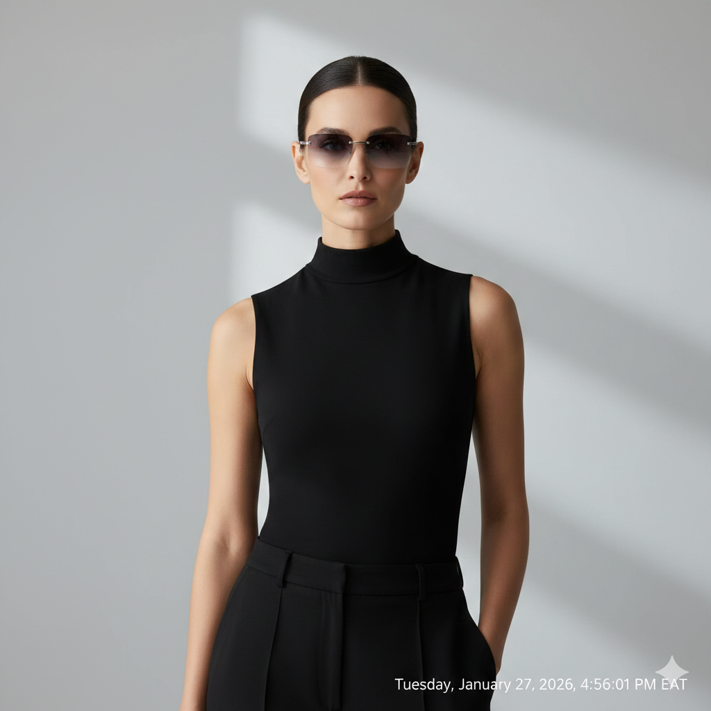 Rimless sunglasses are minimal and soft, perfect for softening strong facial angles. They look modern and refined.