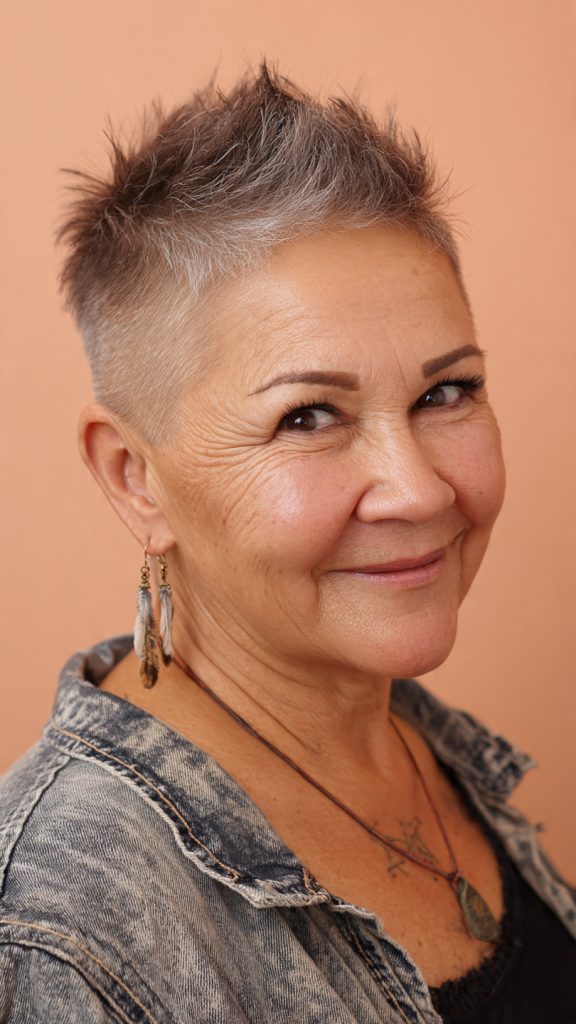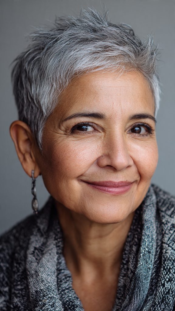 A short pixie with volume at the crown lengthens your face visually, balancing fuller cheeks.